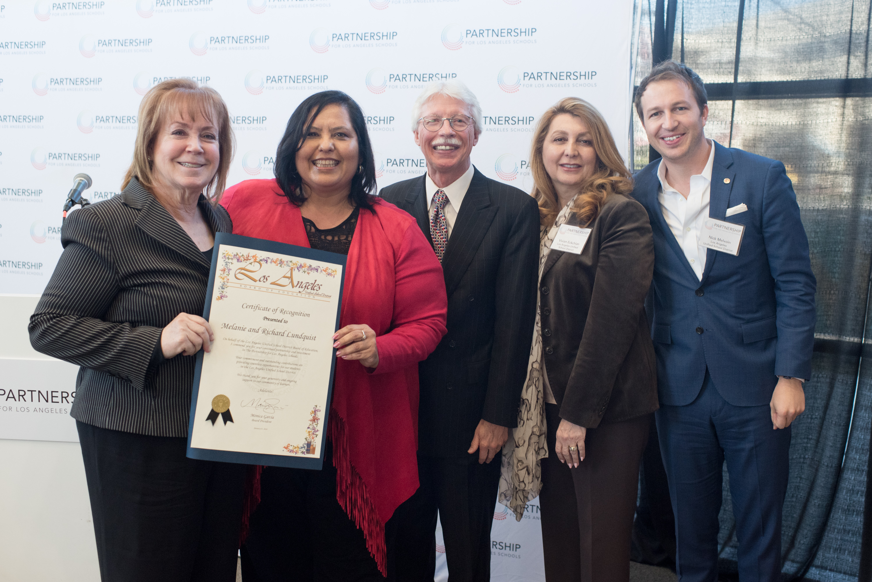 On Thursday, January 18, 2018, Melanie and Richard Lundquist publicly announced their renewed financial contribution of $35 million toward another decade of school transformation by the Partnership for Los Angeles Schools (Partnership). This brings their contribution total to $85 million — the second largest personal contribution to public schools in a single school district.